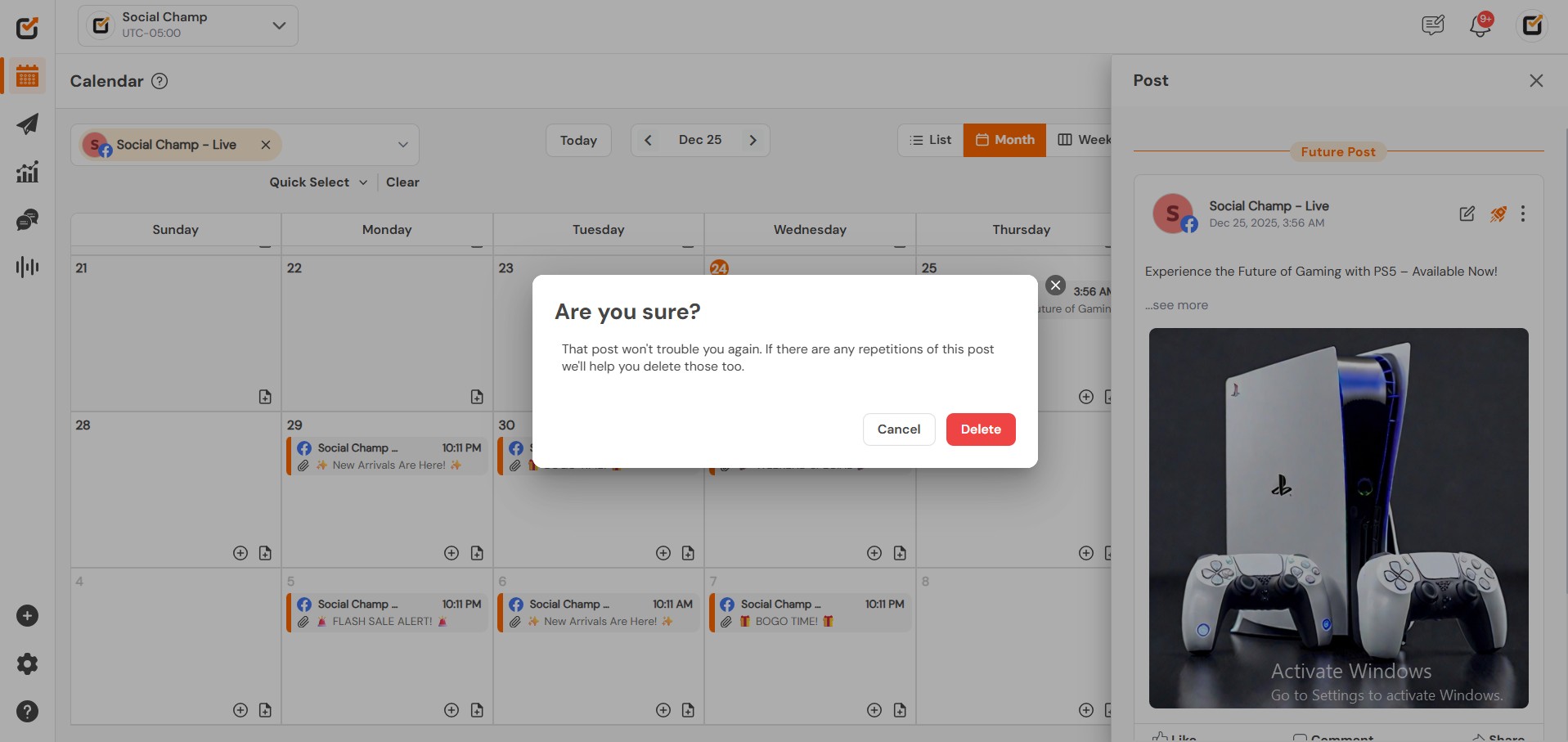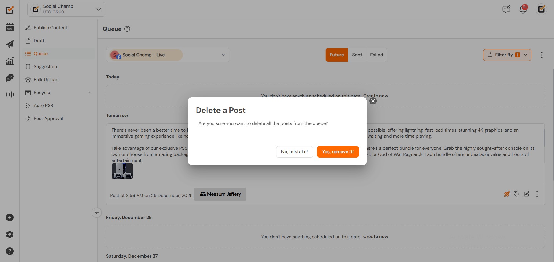 Hey, Champs, have you ever wondered how to delete scheduled posts? Social Champ allows you to delete them from the Calendar/Queue.