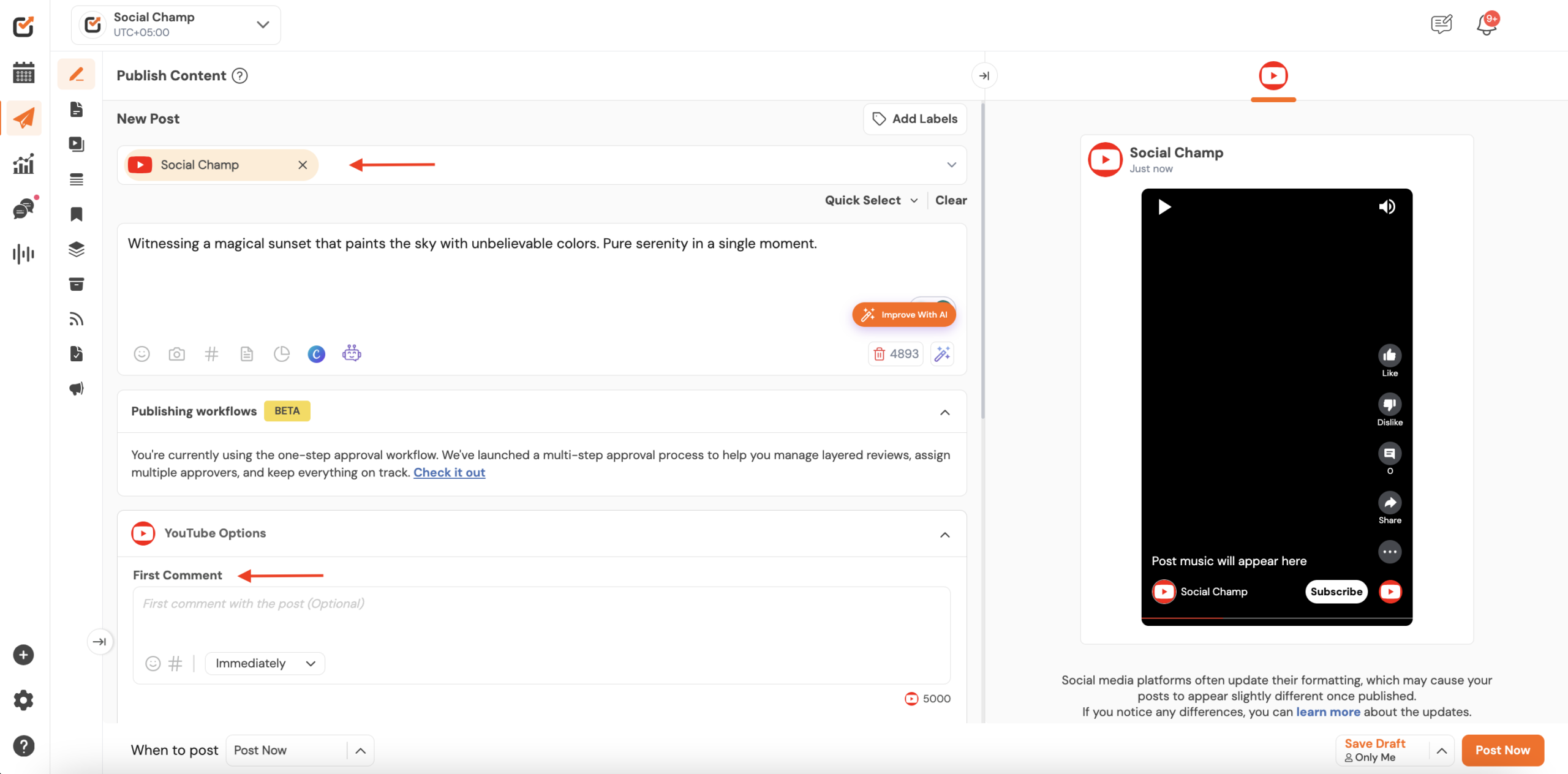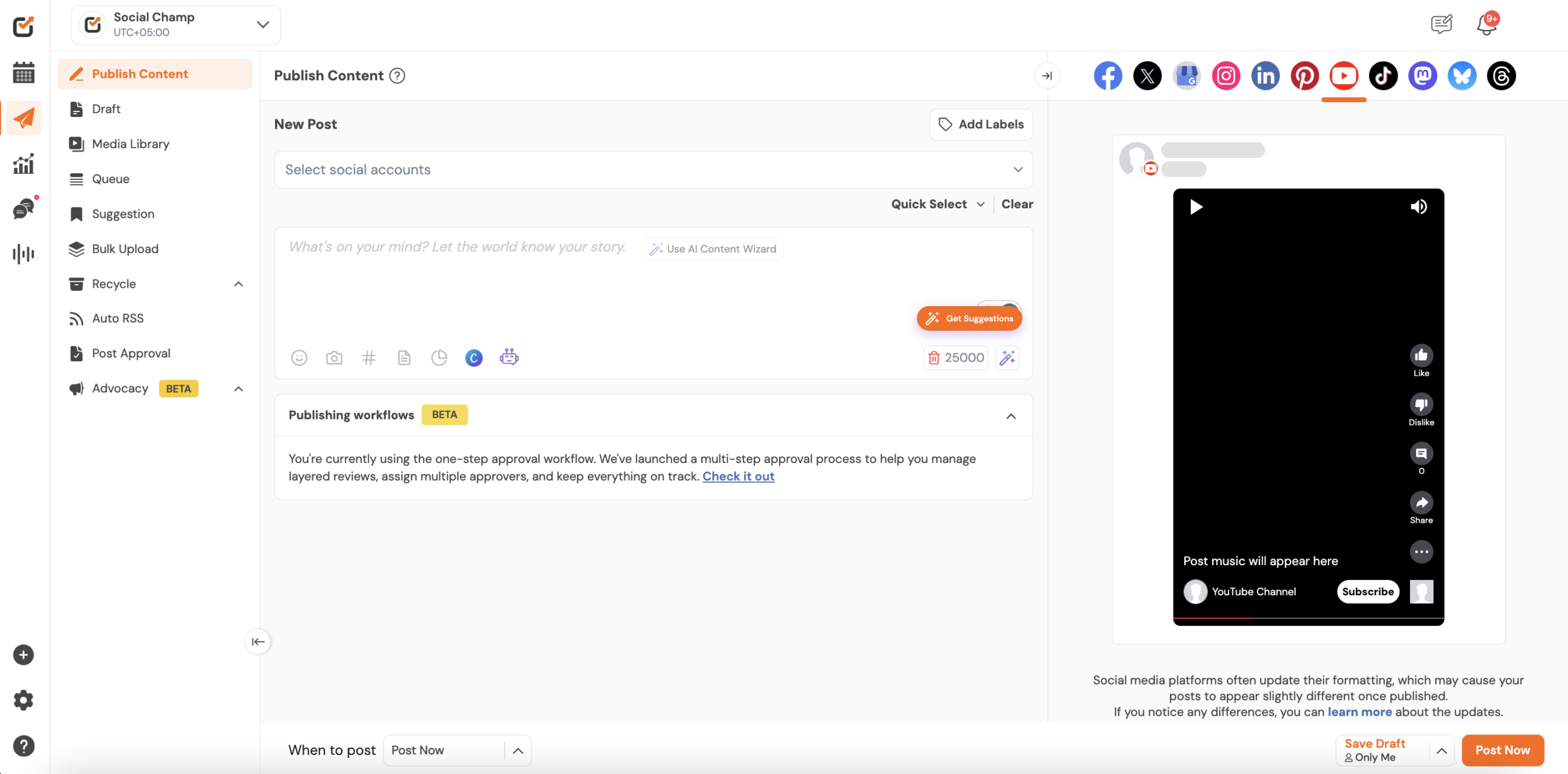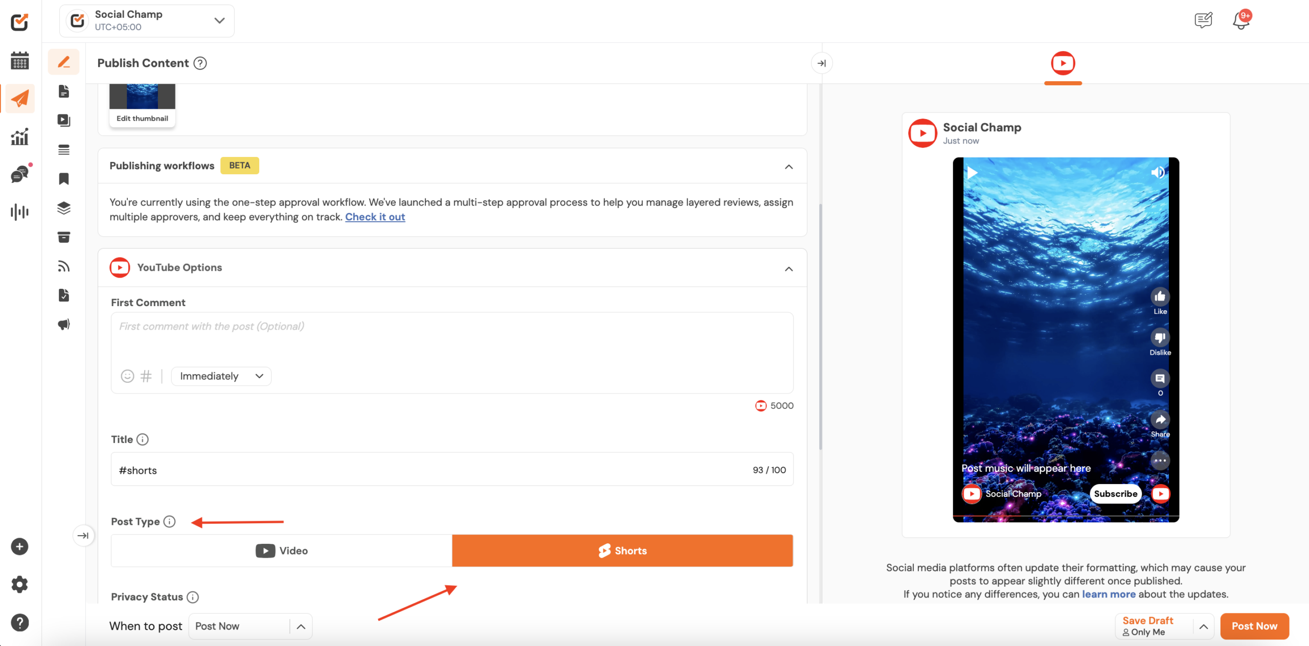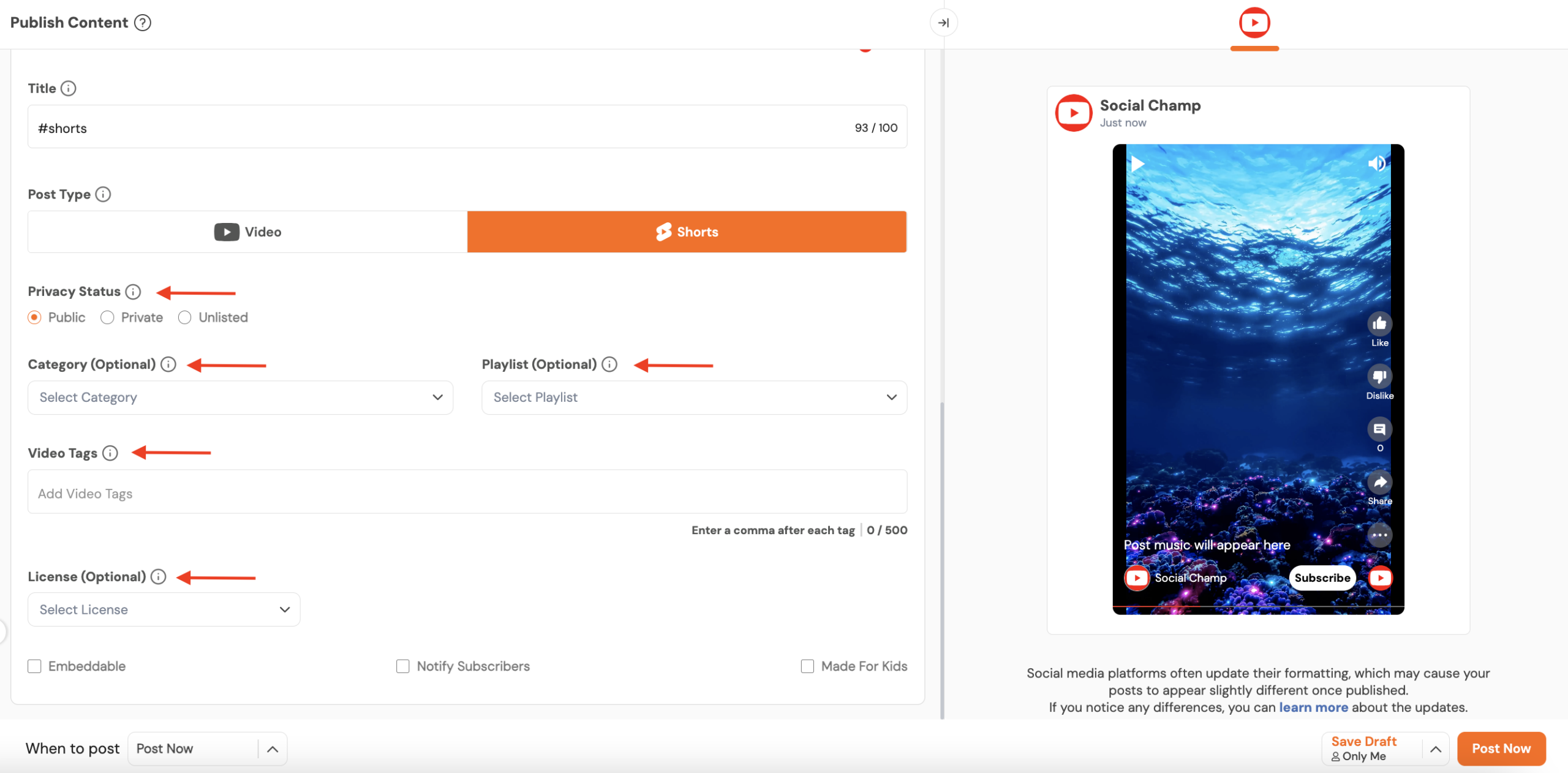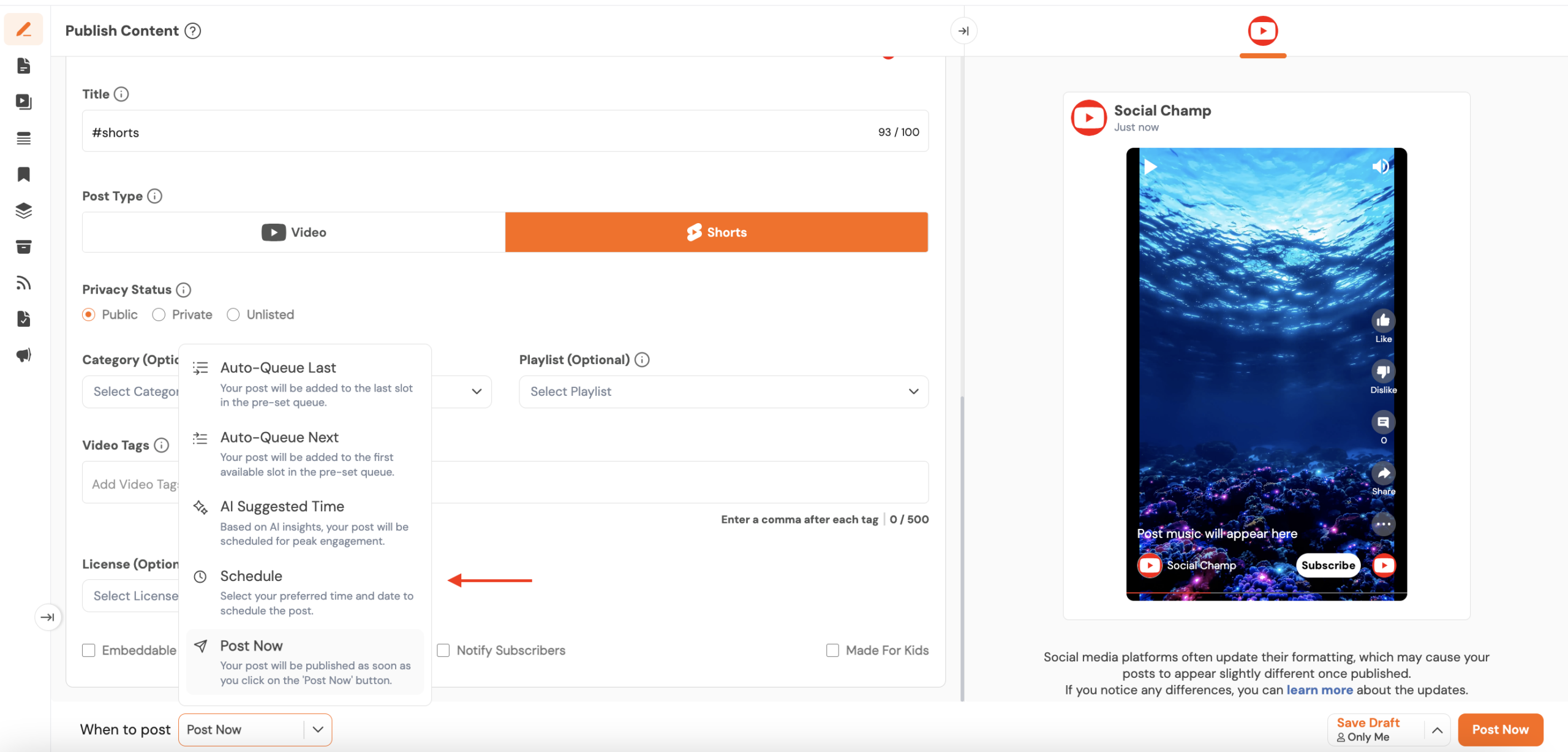 With Social Champ, you can now schedule your Shorts effortlessly, customize important video settings, and stay consistent with your content strategy all from one easy-to-use dashboard!