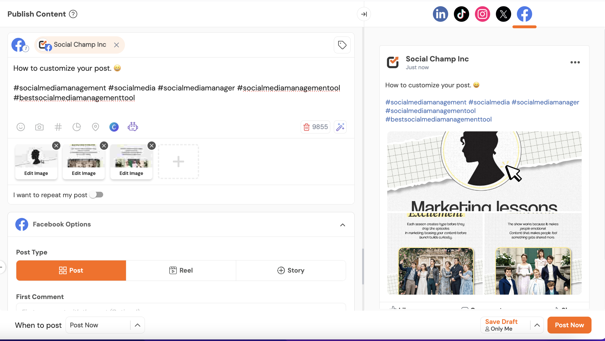 - Now, you can edit the post individually for each platform. This allows you to: